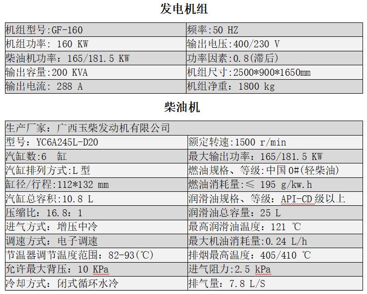 玉柴160KW