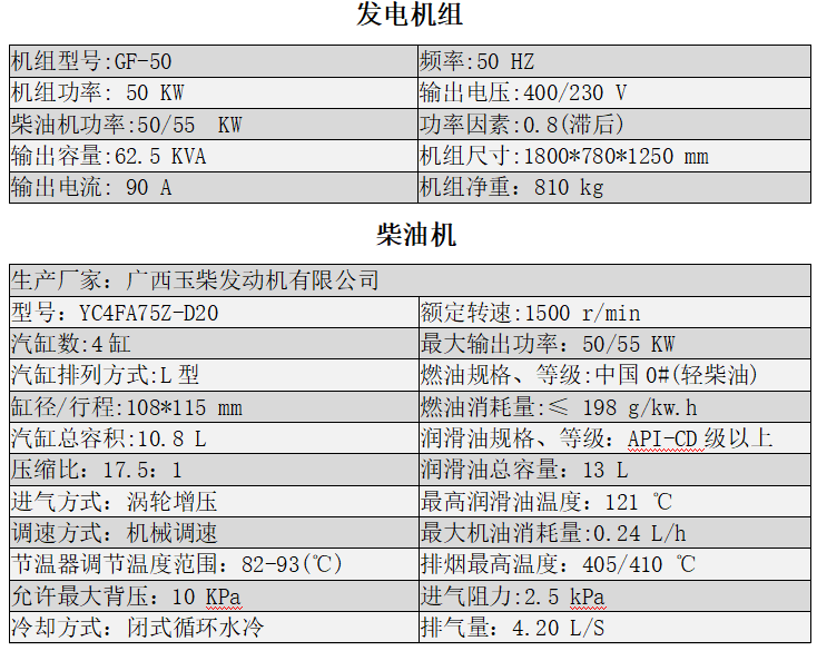 玉柴50KW