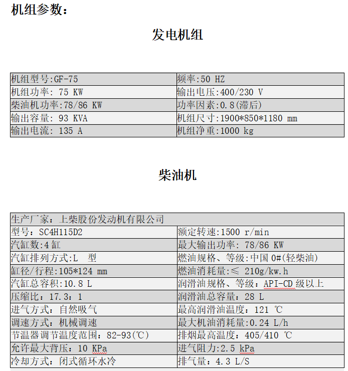 機(jī)組在下列條件下,能夠可靠的工作輸出持續(xù)功率:海拔高度:≤3000 m;環(huán)境溫度:40℃相對濕度:85%。