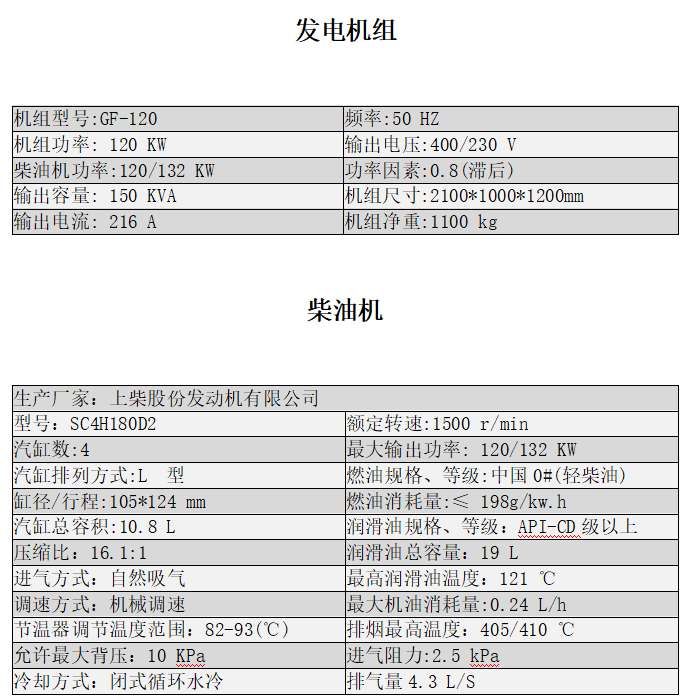 機(jī)組在下列條件下,能夠可靠的工作輸出持續(xù)功率:海拔高度:≤3000 m;環(huán)境溫度:40℃相對(duì)濕度:85%。