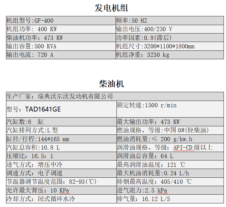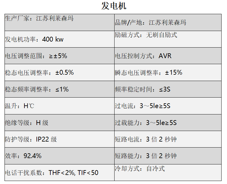 ★ 隨機資料:柴油機及發(fā)電機原廠技術(shù)文件、發(fā)電機組說明書、測試報告等。