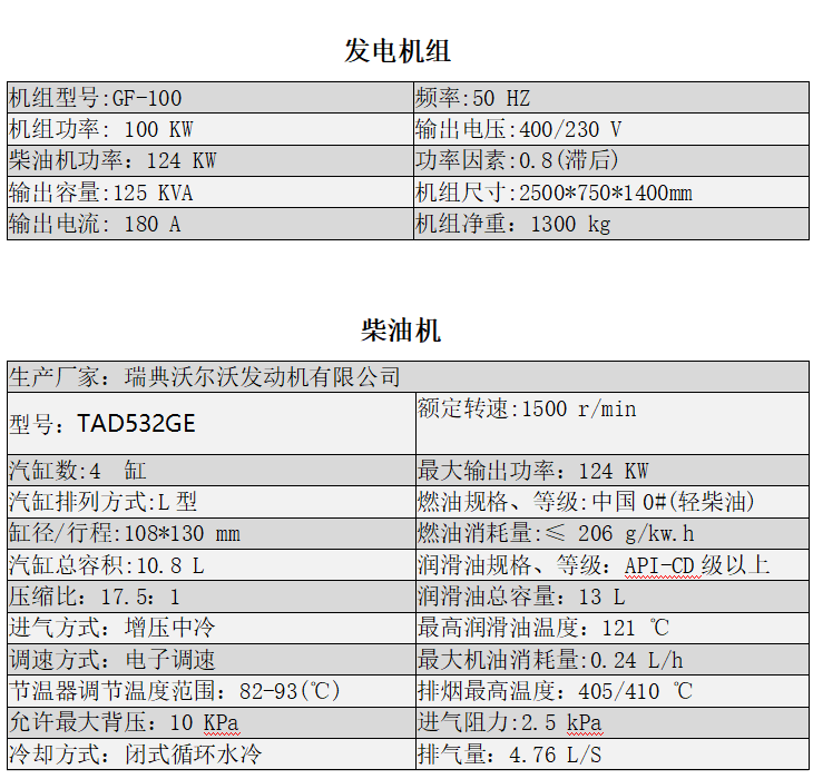 ★隨機資料:柴油機及發(fā)電機原廠技術(shù)文件、發(fā)電機組說明書、測試報告等。