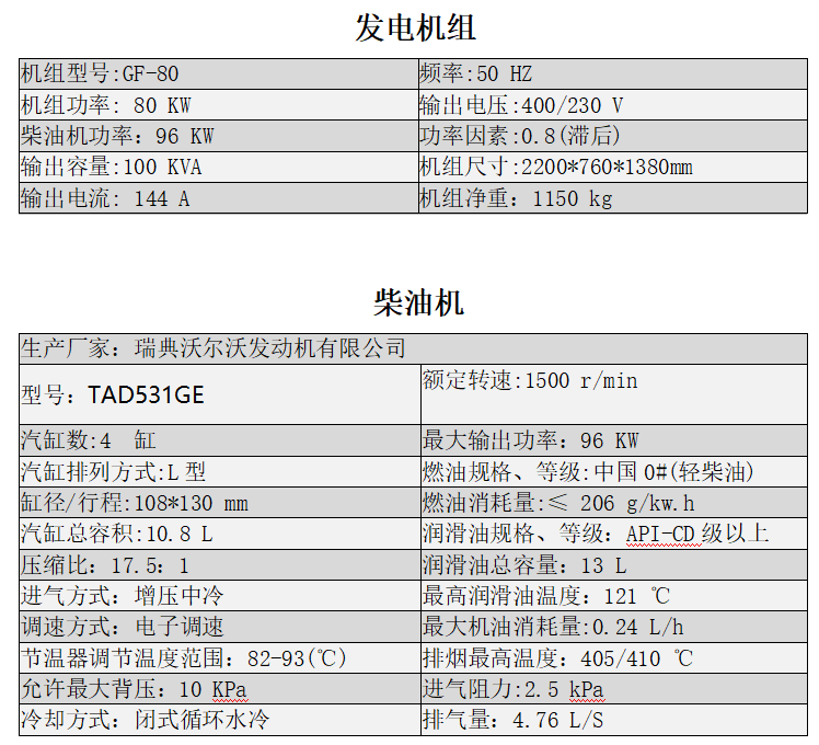 ★隨機資料:柴油機及發(fā)電機原廠技術(shù)文件、發(fā)電機組說明書、測試報告等。