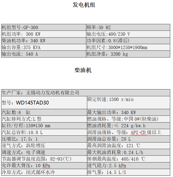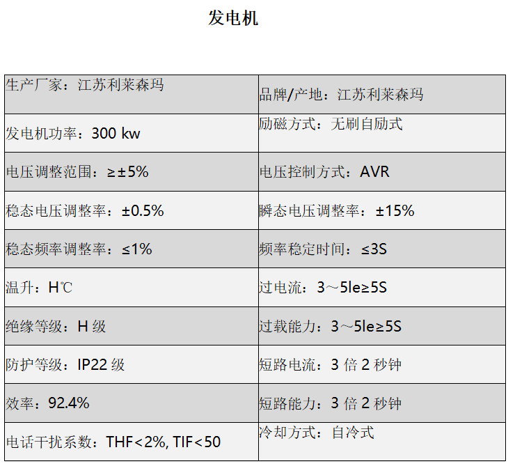 ★ 隨機資料:柴油機及發(fā)電機原廠技術文件、發(fā)電機組說明書、測試報告等。