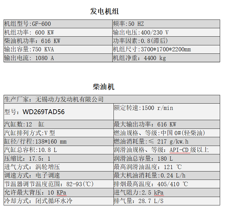 機(jī)組在下列條件下,能夠可靠的工作輸出持續(xù)功率:海拔高度:≤3000 m;環(huán)境溫度:40℃相對濕度:85%。