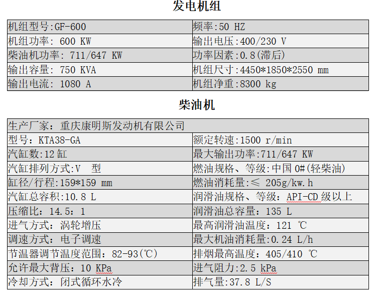 重慶康明斯600KW